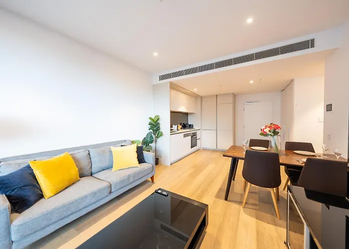 The spacious 70 m² Modern 2 Bedroom Apartment Darling Square is located nearly a 5-minute stroll from The Goods Line Park and overlooks the city. Wentworth Park is a walk from the 1-bedroom apartment, while Darling Harbour is situated 16 minutes' walk away.